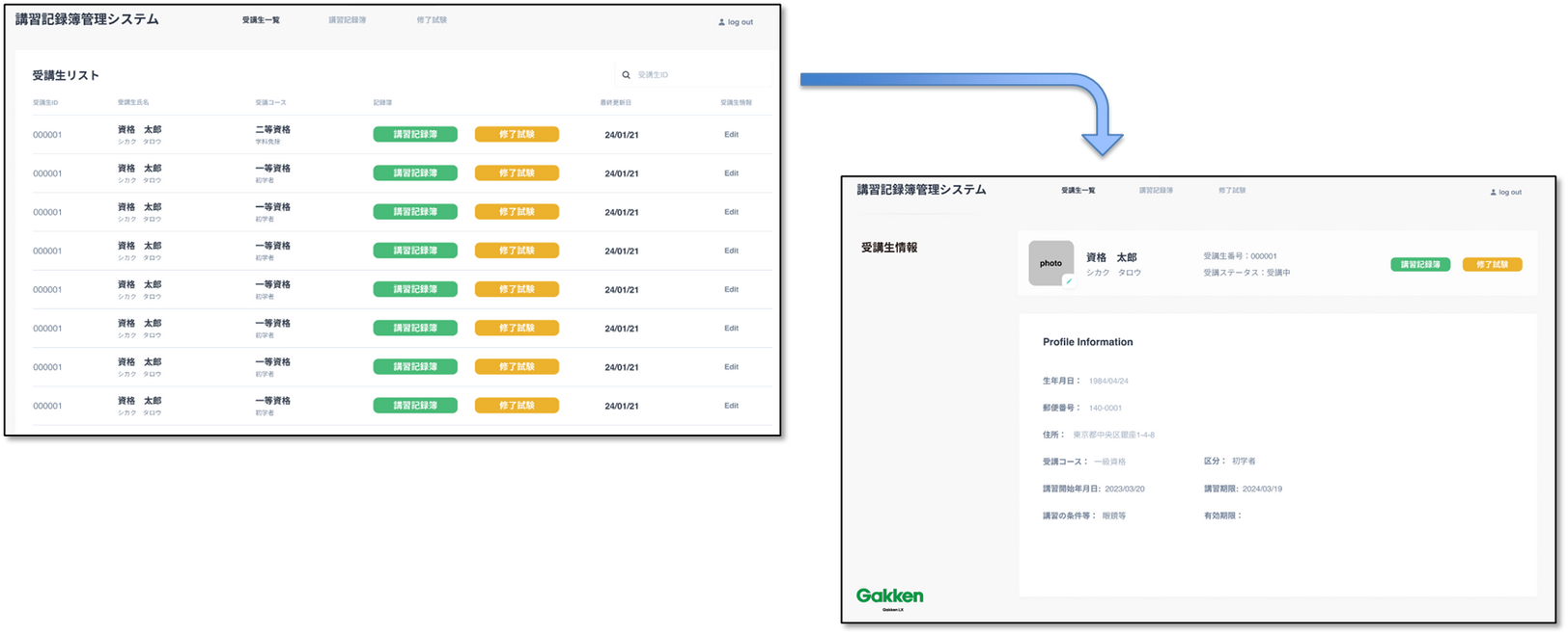 Gakken LXのMangement Systemは、全国の各種登録講習機関の皆様に